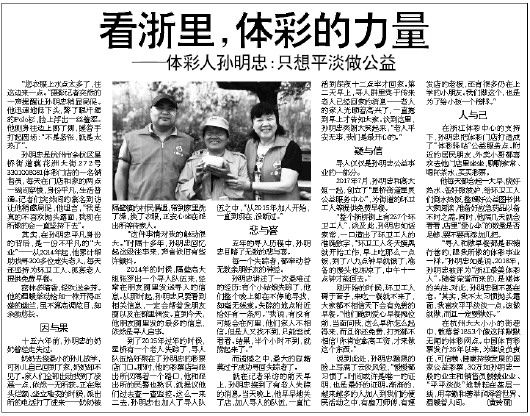 “寻人和做早餐都是积德行善的,跟我所做的体彩事业一样。”孙明忠如是说。2018年,孙明忠被评为“浙江最美体彩人”。随着荣誉而来的,是媒体的关注。对此,孙明忠倒不甚在意。“其实,我不太习惯抛头露面,我喜欢平平淡淡一点。该做就做,而且一定要做好。”