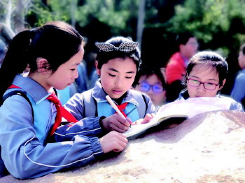 为何如此热衷在研学上下功夫?校长于海港说:“正如陶行知先生所言:活书是活的知识宝库。花草是活书、树木是活书、飞禽走兽小虫微生物是活书……研学活动的开展基于潍水学校“绿色教育”文化的体验式德育活动之一,旨在磨练学生的意志,培养学生关爱他人、关爱社会、关爱自然的人文精神,促进学生身体、心理健康以及社会适应能力。”