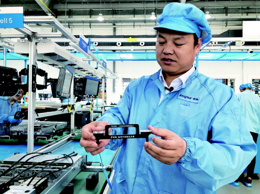 6月11日,浪潮集团高端容错计算机生产基地智能工厂,生产部制程工程师罗希望正忙碌着。去年,习近平总书记在浪潮考察时,罗希望展示了自己发明的通用内存按压工装,得到总书记“实践出真知”的赞许。