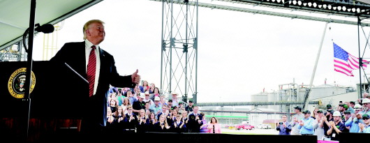 11日,美国总统特朗普在美国艾奥瓦州康瑟尔布拉夫斯的一家乙醇工厂发表讲话。 新华/路透