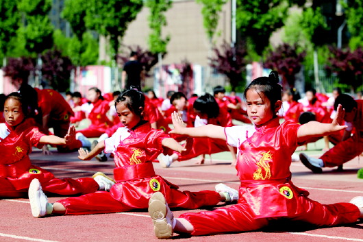 本报6月12日讯(记者 潘世金 通讯员 靳鑫)11日上午,“济南市青少年武术套路业训基地”授牌仪式在槐荫区培新小学举行。仪式上,学生现场展示了学校的武术校本课程。