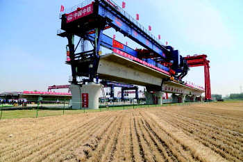 鲁南高铁菏曲段首梁架设成功