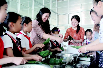 2019年6月4日,端午节来临之际,文登经济开发区小学开展“品端午 承传统”主题活动,学生们深入了解端午节的由来和习俗,在老师指导下学习包粽子,继承传统习俗,感受传统文化魅力。 通讯员 宋永强 摄影报道