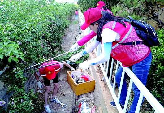 迎接创卫复审,高新志愿者在行动。通讯员 高宣 摄