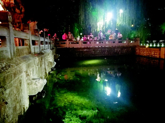 18日晚8:40,黑虎泉三个虎头全部停喷。 齐鲁晚报·齐鲁壹点记者 周青先 摄