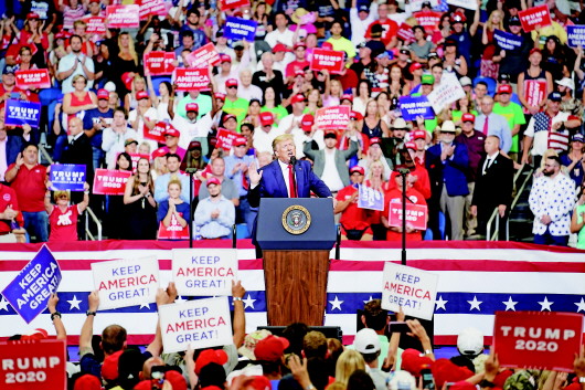 6月18日,在美国佛罗里达州奥兰多,美国总统特朗普在集会上讲话。 新华社发