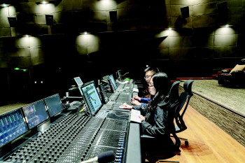 据青岛东方影都融创影视产业园媒介经理刘洋介绍,产业园主要分为两部分:制作区和外景区。制作区拥有包括摄影棚、置景车间、数字影音中心、服务中心等硬性架构,其中数字影音中心囊括了声音楼、视效楼和剪辑楼,两座分别符合杜比全景声高级音效认证及杜比全景声音效认证标准的混录棚置身其中。