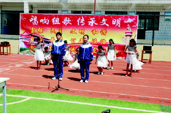 文明组歌传唱 近日,沂源县张家坡中心学校开展了校园“文明组歌传唱”活动,全校一千余名学生参赛,让文明的种子在学生心中生根发芽。 (任晓寒)