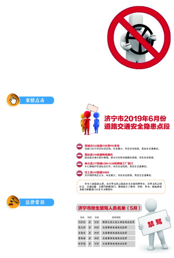 会议上通报,5月份,济宁全市共查处酒驾、醉驾违法行为2387起,吊销驾驶证333本,刑事拘留14人,行政拘留36人。另外,本月还有5人因醉酒后发生重大事故构成犯罪、交通肇事逃逸构成犯罪,被依法终生禁驾。这5人中年龄最大的38岁,最小的24岁,分别被判处有期徒刑和缓刑。同时还通报了济宁市2019年6月份道路交通安全隐患点段。