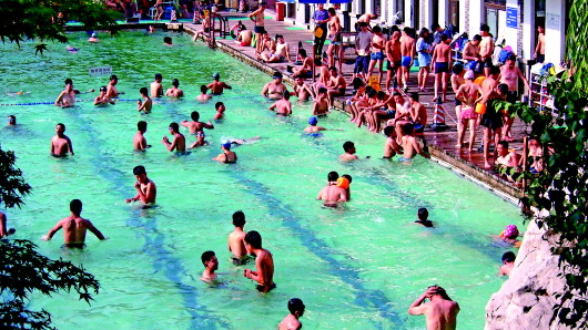▲上周末,泉水浴场里人头攒动。到全国唯一的泉水浴场游泳成为济南市民引以自豪的享受。 齐鲁晚报·齐鲁壹点记者 周青先 摄