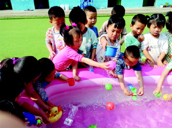 户外戏水活动 日前,沂源县张家坡镇中心幼儿园开展了户外戏水活动。拉近了师生之间的感情,增进了同伴之间的友谊,让孩子感受到了温暖。 (魏先爱)