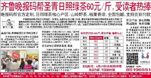 齐鲁晚报码帮圣青日照绿茶60元/斤,受读者热捧