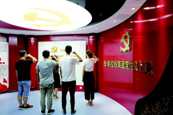 鲁泰控股集团员工参观党性教育基地重温入党誓词。