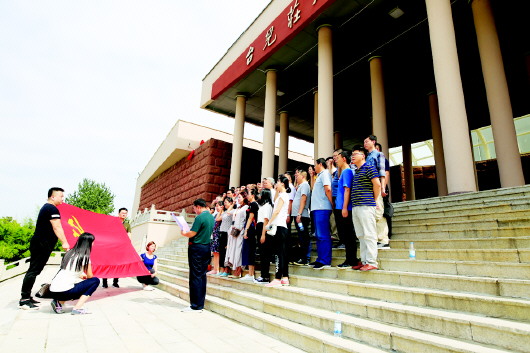 党员到台儿庄战役纪念馆进行党性教育,现场重温入党誓词。