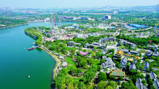 初夏时节,无人机拍摄的济南国际园博园景色。济南正在打造绿城、花城、泉城“三城共辉”宜居大都市。 新华社发