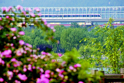 疾驶在轨道交通1号线上的列车。路网建设助力济南驶入“快车道”。新华社发