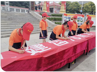 临山小学的少先队员们以“爱护铁路”的主题发出倡议签名活动