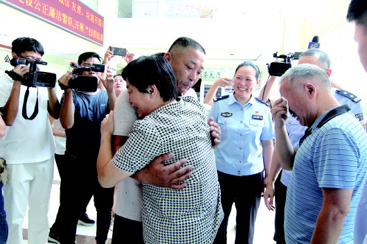 团聚时刻,吴航的亲生母亲抱着他,哭着说“对不起”。 齐鲁晚报·齐鲁壹点记者 邱明 摄