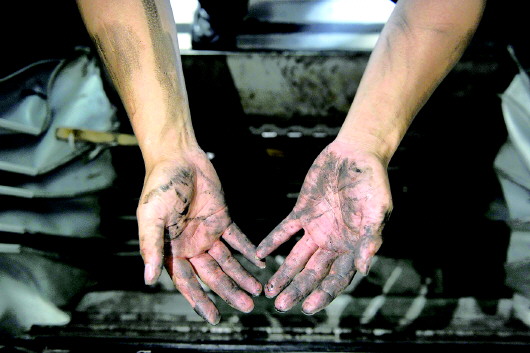 清理完连接渡板,一双手就变成黑色的了。