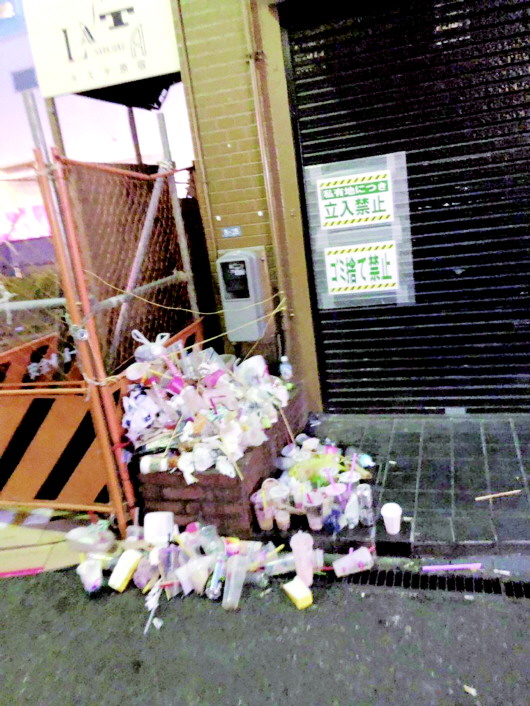 东京涩谷街头,虽然旁边就贴着告示,但奶茶杯还是被乱扔了一地。