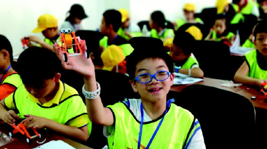 来到中国科学院大学,同学们不仅能够感受到学校的校园气氛,还与学霸面对面交流学习经验。更令他们开心的是,他们在学霸的指导下制作了“蠕虫机器人”。有了之前制作太阳能月球探测车的经验,机器人的制作就轻松起来。第一个独立完成制作的四年级四班的张楠说:“我喜欢制作蠕虫机器人,因为成品非常有趣,我做的时候也感觉很有趣。”