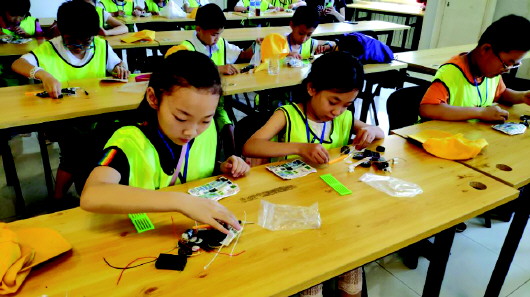 学生制作蠕虫机器人。实习生 郭梦雨 摄