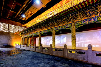 走进馆内“曲阜孔庙大成殿”的复原空间展厅,将“大成殿”按照三比一的尺度缩小,呈现至参观者的眼前;在廊柱间的展墙上用数码影像设备播放孔子周游列国和其思想对后世影响的生动故事场景,给人以身临其境的感受。