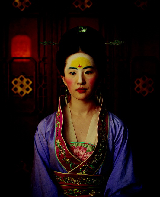 真人版《花木兰》8日发布的首款预告中,刘亦菲饰演的花木兰以红妆、男装、女装、武装等多个造型亮相。不过,面对短短一分多钟预告,观众吵得炸开了锅。预告中,清代客家土楼的“乱入”、花木兰红妆造型的宫廷眉心花瓣妆、不太古老的东方乡野画面等,都成为观众吐槽的对象。花木兰“贴花黄”后,“神仙姐姐”刘亦菲被弄成雍容华贵的宫廷风造型,被吐槽丑到不能看。确实,贴上花瓣儿的黄色额头、大面积腮红,浓郁的红唇……要是中国导演敢这样打扮花木兰,恐怕会被观众的口水给淹死。