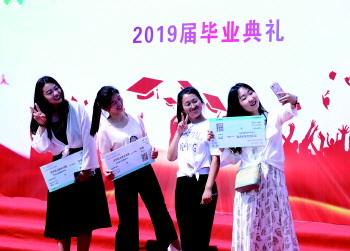 毕业生们合影。 齐鲁晚报·齐鲁壹点记者 黄健恒 摄