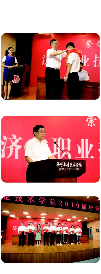 三年的时间转眼即逝,看着学生们在学习中不断的锤炼、完善和提升,济宁职业技术学院院长李新斗感慨万千。“同学们,离开校园步入社会,希望你们能不骄不躁,踏实前行,向美向善,坚守本心。”临别前,李院长更多的是对学生们的嘱托与希望,“不以恶小而为之,不以善小而不为,凡事听从自己的良心,坚守道德良知,不逾越道德底线,只有这样,才能走得踏实、行稳致远。亲爱的同学们,从今天起你们将带着济职人特有的印记,走向社会,为实现梦想开始新的征程。欢迎你们常回济职看看,母校是你们永远的家。”