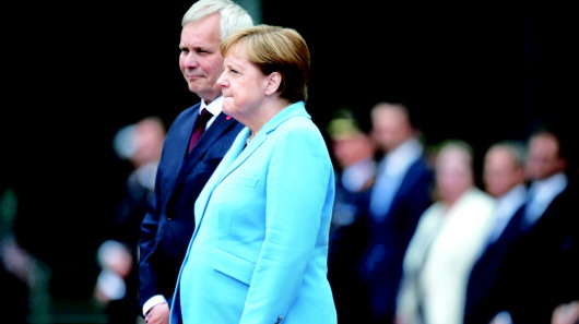 ▲7月10日,默克尔在柏林会见芬兰总理时再次出现身体颤抖的情况。