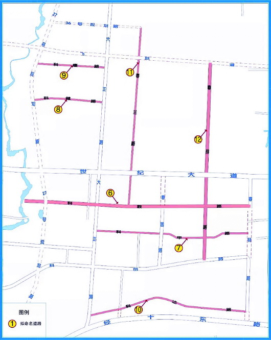 拟将位于高新区两河片区,东起大正路,西至两河片区27号规划路,长955米,宽24米的道路命名为科健路;拟将科健路北侧,东起大正路,西至两河片区27号规划路,长940米,宽24米的道路命名为科康路;拟将东起春明路,西至大正路,长2050米,宽20米的道路命名为科达路。