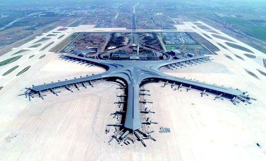 6月12日,无人机拍摄的建设中的青岛胶东国际机场。目前,机场航站区、飞行区、配套区三大板块主体工程已基本完成。 新华社 摄