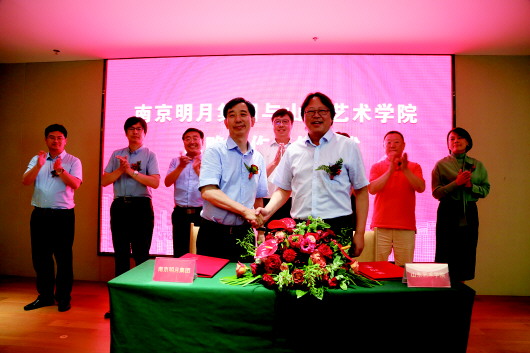 ▲南京明月集团董事长李顺祥与山东艺术学院院长王力克代表双方签订战略合作协议。