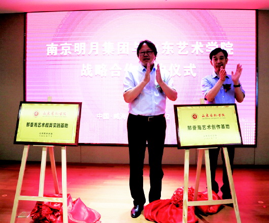 ▲南京明月集团董事长李顺祥与山东艺术学院院长王力克共同为那香海艺术教育实践基地、那香海艺术创作基地揭牌。