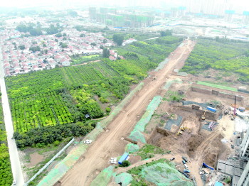 谭岗路北延(环城西路南北疏通)工程项目,作为直接贯通太白湖新区与任城区的南北疏通工程,目前铁路南侧部分道路路基已建成40%,南北管网施工完成60%。图为谭岗路北延(环城西路南北疏通)工程施工现场。