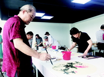 书画家受邀走进领路人教育孵化平台挥毫泼墨。 本报记者 孔茜 摄