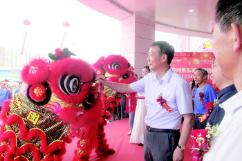 象征着吉祥喜庆的舞狮表演后,张明东董事长亲手为醒狮点睛,一点左眼生意兴隆、二点右眼财源广进、三点天灵前程似锦!同时也意寓着将吉祥带给河景东城的业主,祝他们的生活蒸蒸日上。