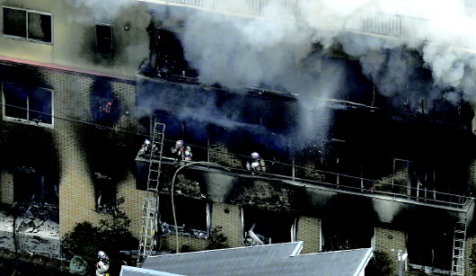 警方通报说,18日上午10时30分左右,一名男子进入“京都动画”工作室,“泼洒了汽油状的液体”并纵火。火灾发生时,约有70名工作人员在这栋三层建筑物里工作。火灾引发爆炸,建筑物二层和三层的玻璃全部被震碎。火灾15时左右被扑灭。