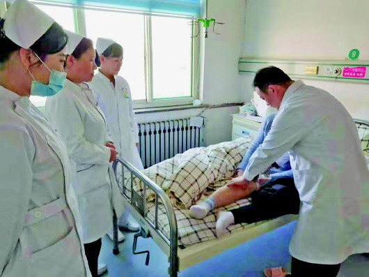 康峰在为患者检查恢复情况。