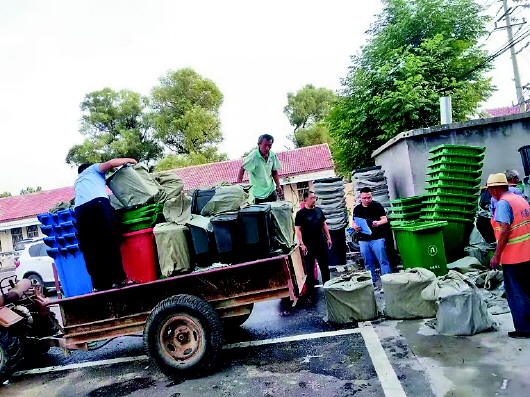 曲堤镇分类垃圾桶发放。