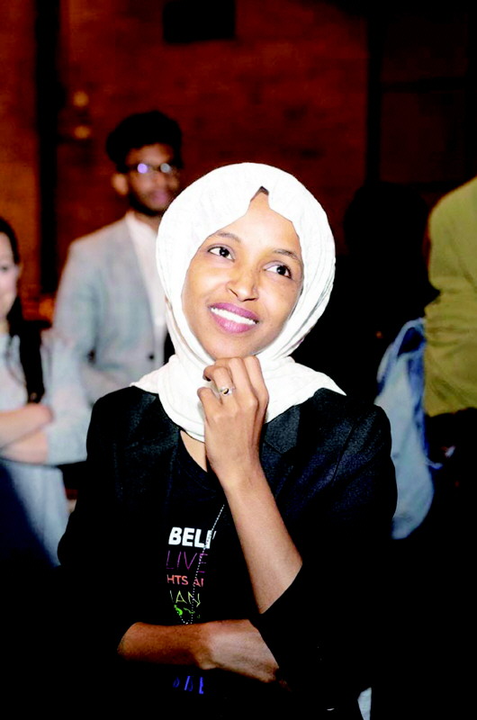 去年11月,美国国会中期选举迎来了很多“第一”,美国众议院首次迎来两名穆斯林女议员,一位是密歇根州民主党人拉希达·特莱布,另一位就是伊尔汗·奥马尔。奥马尔还创造了其他“第一”:她是美国众议院第一位索马里裔议员,第一位曾是难民身份的议员,第一位戴着头巾进入国会的议员,来自明尼苏达州的她还是该州第一位非白人议员。