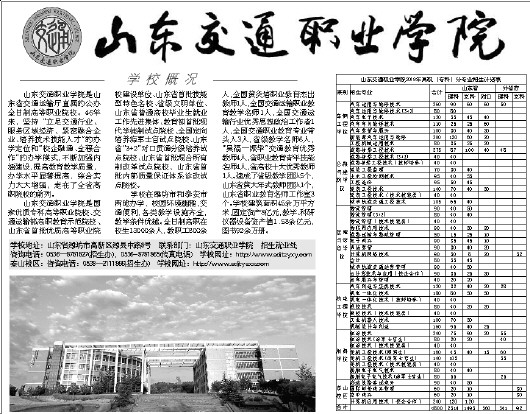 学校地址:山东省潍坊市高新区潍县中路8号 联系部门:山东交通职业学院 招生就业处