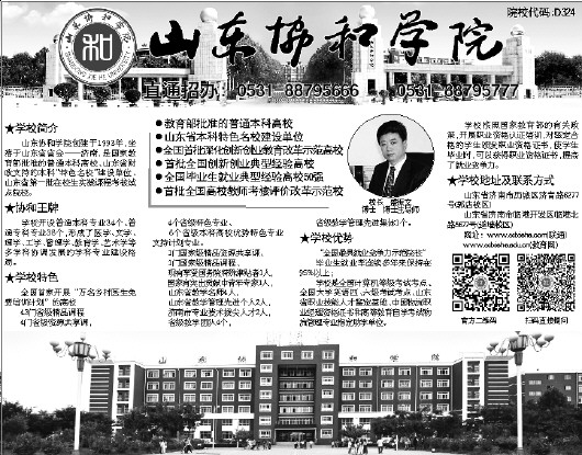 山东协和学院创建于1993年,坐落于山东省省会——济南,是国家教育部批准的普通本科高校、山东省财政支持的本科“特色名校”建设单位、山东省第一批在校生实践课程考核试点院校。