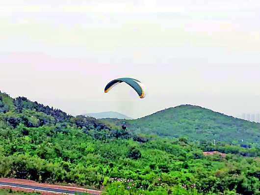 ▲7月22日,在即墨东部的四舍山,仍有滑翔伞在空中飞行。