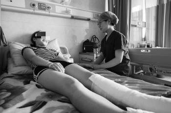 王敏看望伤者恢复情况。