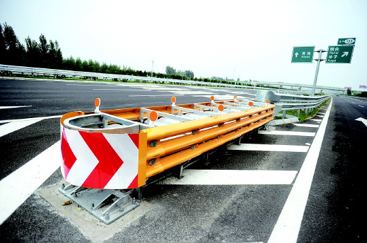 出高速的闸道口设置了旋转式防撞护栏。 齐鲁晚报·齐鲁壹点记者 戴伟 摄