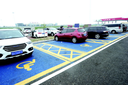 在济青高速北线潍坊西服务区,有专门为残疾人设定的停车车位。