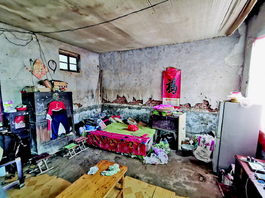 王际广的家可以用“家徒四壁”来形容。两间破旧的砖瓦房,厨房是一间没有门的屋子;而一间不大的卧室还被隔成两间,一间堆放生活杂物,另一间放了一张床。