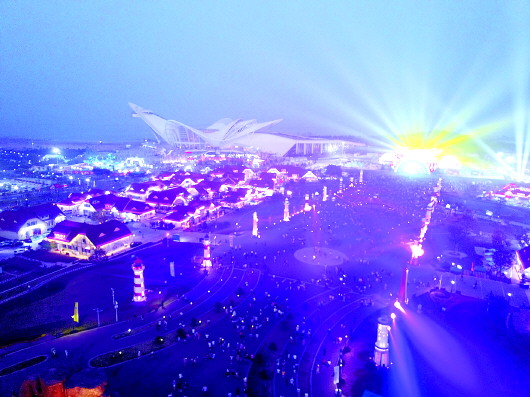 26日晚,青岛国际啤酒节开幕式现场灯光璀璨,热闹非凡。 齐鲁晚报·齐鲁壹点记者 周青先 摄